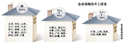 為解決中低收入人群的住房問題,今年3月,黨中央、國務院明確提出2011年要新建1000萬套保障房,并要求11月底必須全部開工。為督促各地能夠按時完成保障房建設任務,國家在年初已經與各地簽訂軍令狀,對于完不成任務的主要領導將實施約談,到行政處分,直至降級免職的嚴厲處罰。住建部昨天公布的數據顯示,截至9月底,全國城鎮保障性住房和棚戶區改造住房已開工986萬套,開工率為98.6%。與8月底相比,9月份全國新開工保障房118萬套,開工率提高了12個百分點。